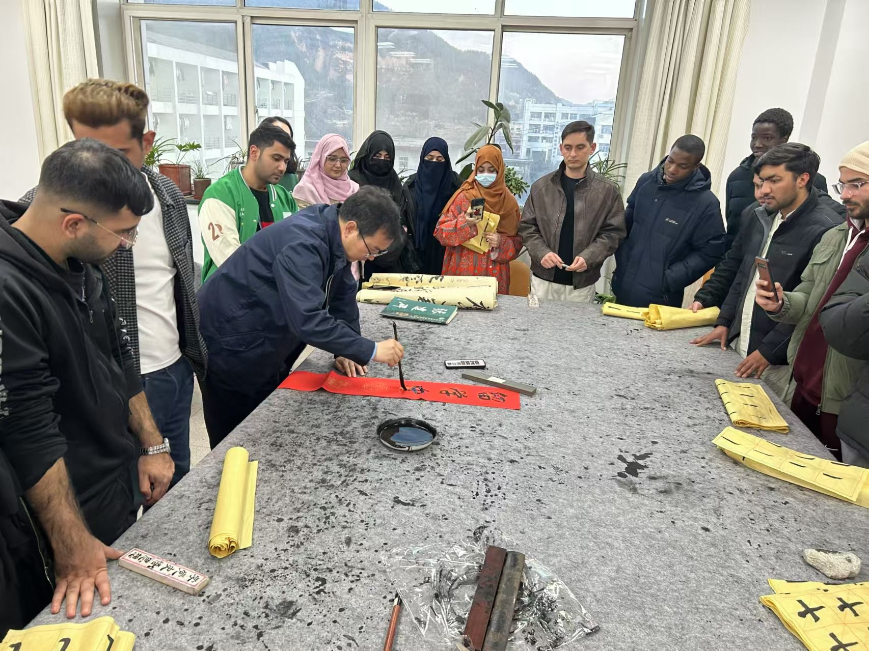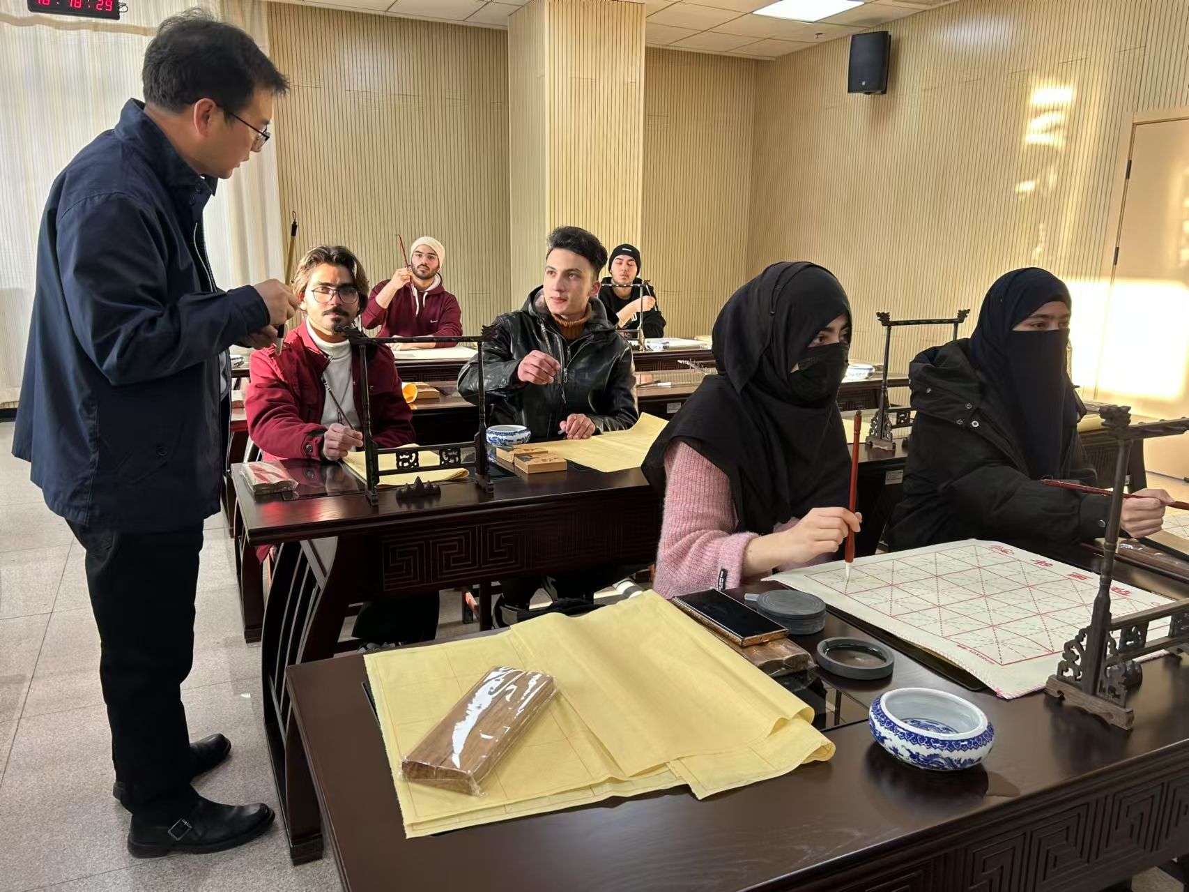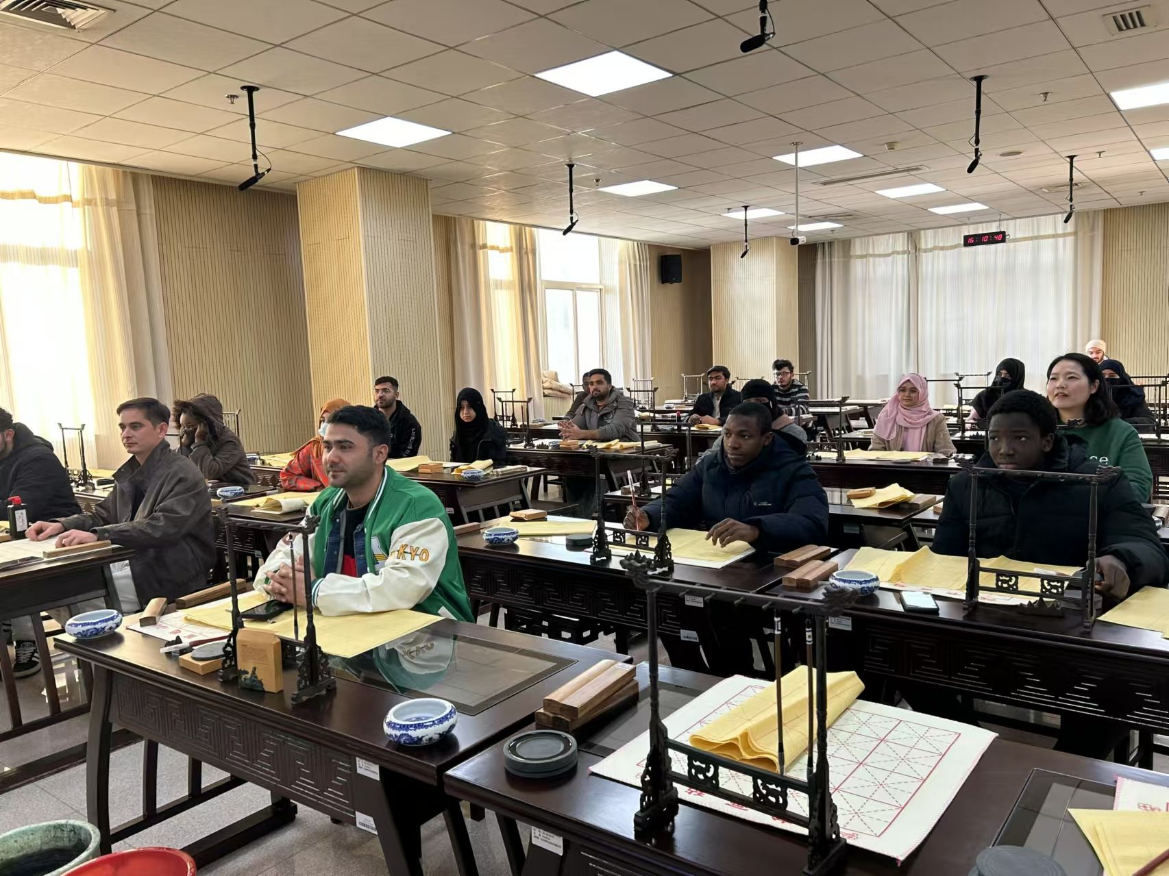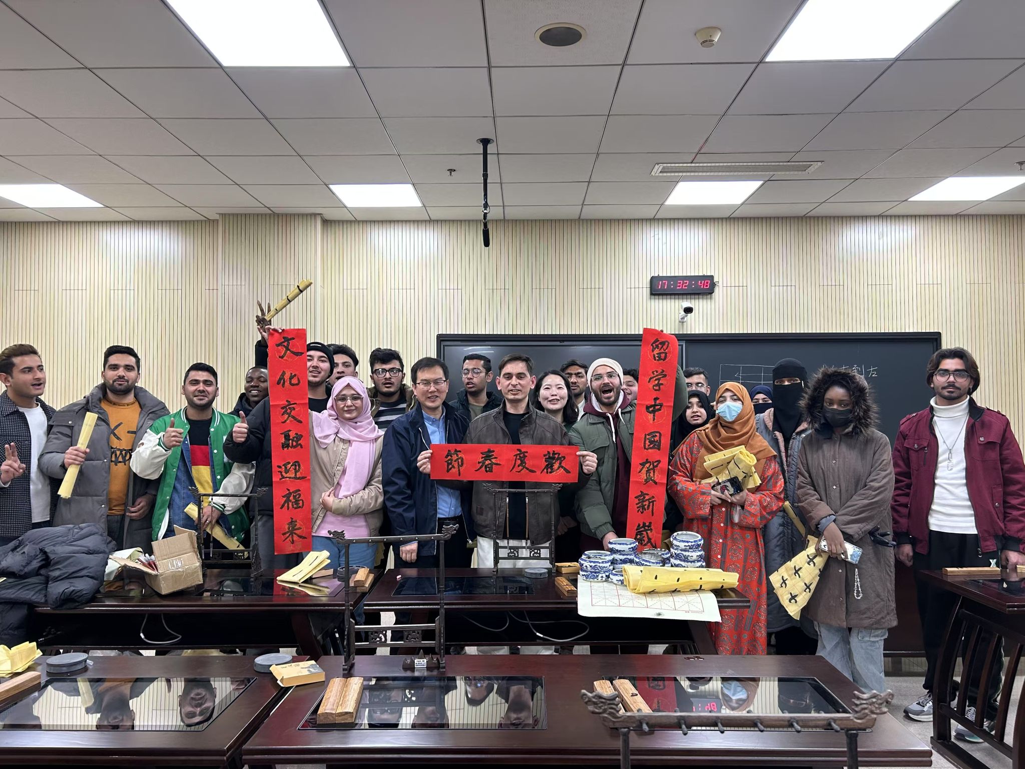 组织了来自巴基斯坦、阿富汗、尼日利亚、韩国的38名新生走进文化体验课堂,开展中国文化的学习和体验活动。