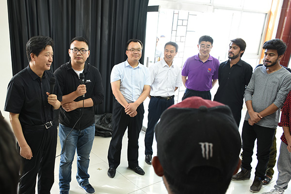 在留学生活动中心,薛书记一行认真听取了我校留学生教育的工作汇报,详细询问了留学生的学习、生活状况,向留学生赠送了体育器材。薛书记向留学生介绍了学校光荣的办学历史,勉励大家要珍惜青春岁月、珍惜留学机会,扎实学习专业知识,充分了解中国文化,努力扩大国际视野,为维护中巴两国的友谊,贡献出自己的一份力量。
