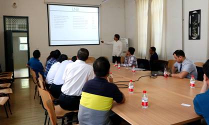 座谈会上,李喜迎书记从师资队伍建设及学科专业设置等方面介绍了物电学院的办学情况。Kouhyar教授介绍了北达科他大学电子工程系所设置的研究方向及自己近年来的研究成果。随后,Kouhyar教授一行与物电学院负责人就师生互访等相关问题进行了深入的探讨,初步达成了合作意向。