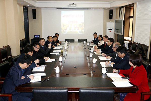 4月2日上午,深圳技术大学临时党委书记、主任阮双琛一行7人来我校交流访问。在逸夫楼第三会议室,我校校长张金锁、副校长王刚、国际处处长梁润生,党政办、科研处、对外交流与合作处等部门负责人,与阮双琛书记一行进行了座谈。座谈会由王刚副校长主持。