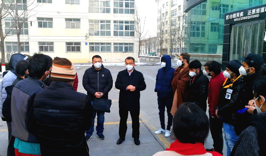 1月31日下午,从咸阳返校的王刚副校长带领国际处疫情防控小组梁润生、杨向宏和张杰到留学生公寓看望并慰问在校留学生,并对我处疫情防控工作提出明确要求。