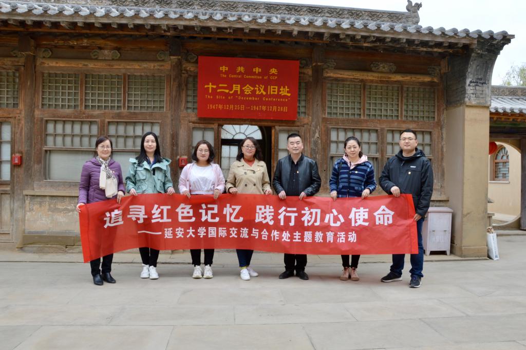 4月9日至11日,国际处组织全体职工开展了“追寻红色记忆、践行初心使命、奋力担当作为”党性主题教育活动。本次活动依托陕北红色革命资源,紧紧围绕党的历史发展,组织职工回顾和追寻红色记忆,旨在重温革命精神中传承红色基因,进一步坚定理想信念。