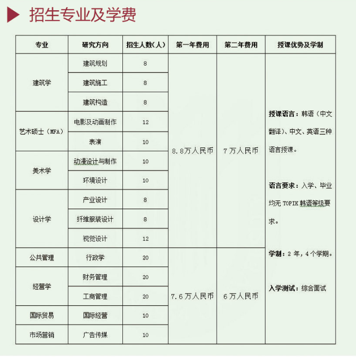 4、接受跨专业报读,入学不考核韩语等级。