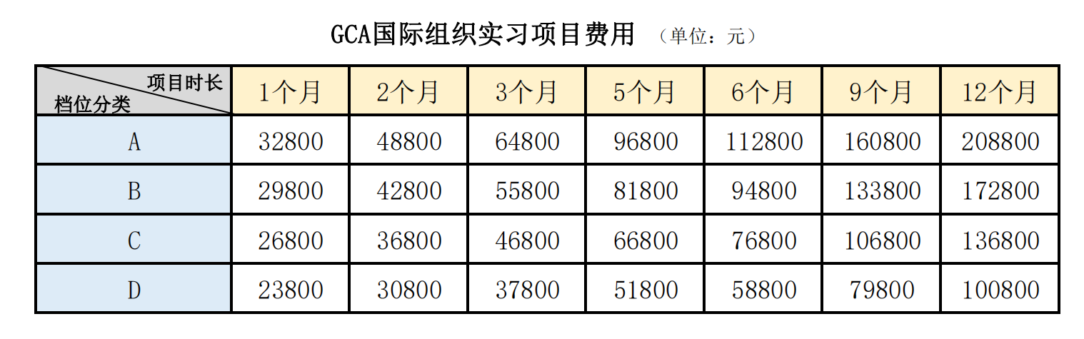 报名参加项目学生,顺利完成国际组织实习任务并经考核合格后可以申请GCA国际教育集团奖学金资助,GCA国际教育集团提供3000元/人次国际组织实习专项奖学金,我校提供2000元/人项目资助。