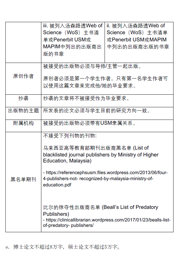 马来西亚理科大学在博士培养方面主要采用研究式教学培养模式,由专业导师教授带领学生授课,参与科研,没有固定学制学分要求,整个博士培养时间为3-6年(根据不同专业而定),概括分为三个阶段,第一阶段主要培养语言水平、制定培养计划、公共专业基础研究方法论等课程;第二阶段核心课程与科研,研究方法,定量研究等;第三阶段课题研究,论文写作、发表,毕业答辩等。其中第一阶段分为4个月左右的语言水平提升和2个月左右的公共专业课(有雅思成绩者不需要参加语言课程提升),第二、三阶段根据导师教授和学员制定的培养计划自主完成。